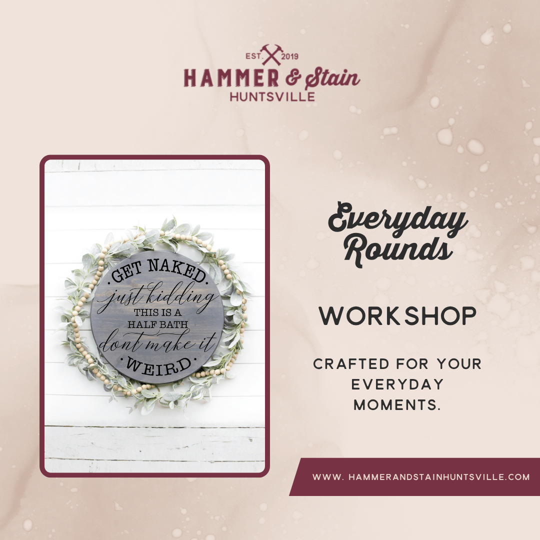 - Rescheduling: You may request a studio credit by emailing Hammerandstainhuntsville@gmail.com at least 48 hours before your class. Studio credits are valid for 6 months. Requests made less than 48 hours before may not be honored.